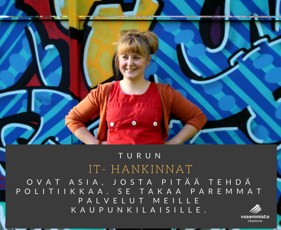 Paitsi että ohjelmistoihin ja muihin it-hankintoihin uppoaa sievoisia summia rahaa, ovat toimivat ohjelmistot edellytys sujuville palveluille niin palveluita käyttävien turkulaisten kuin henkilöstönkin näkökulmasta. Käyttöliittymäpuolella on varmistettava palveluiden saavutettavuus, jotta myös erityisryhmät kuten aistivammaiset ja vanhukset voivat käyttää palveluita. Henkilöstön osalta on varmistettava, että porukkaa koulutetaan tarpeeksi, jotta ongelmia ei synny tiedonpuutteen takia. It-asioista pitääkin siis tehdä politiikkaa, koska kysymyksessä on kuntalaisten hyvinvointi ja kaupungin varojen käyttäminen.