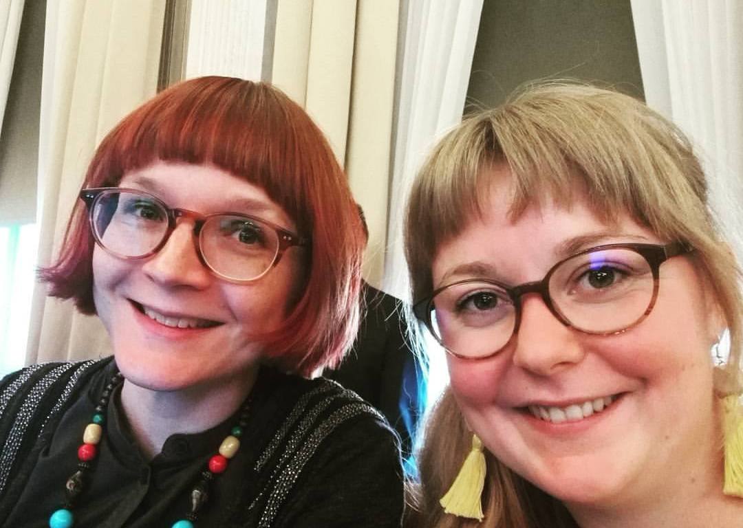 Kuvassa hymyilemme valtuuston kokouksessa vierustoverini Merjan kanssa, politiikan ehdottomiin hyviin puoliin lukeutuu se, että saa tutustua myös tosi kivoihin ihmisiin!